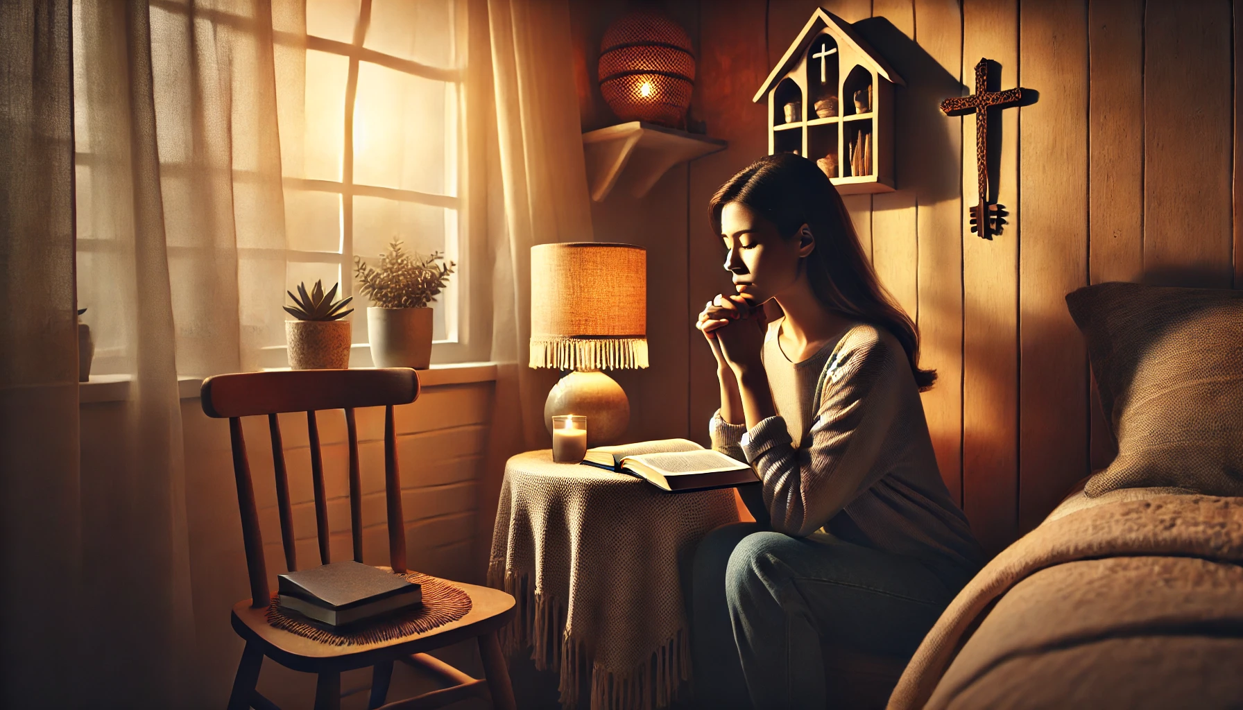 Não precisa ser um quarto de oração inteiro. Um cantinho com uma cadeira confortável, uma Bíblia e um caderno já é suficiente. Esse espaço físico ajuda a criar um ambiente de intimidade com Deus.